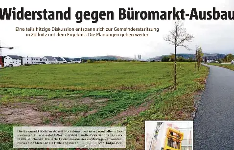 Vor dem ortseingang von zöllnitz beginnen die vorbereitungen für das millionenprojekt der büromarkt böttcher ag.