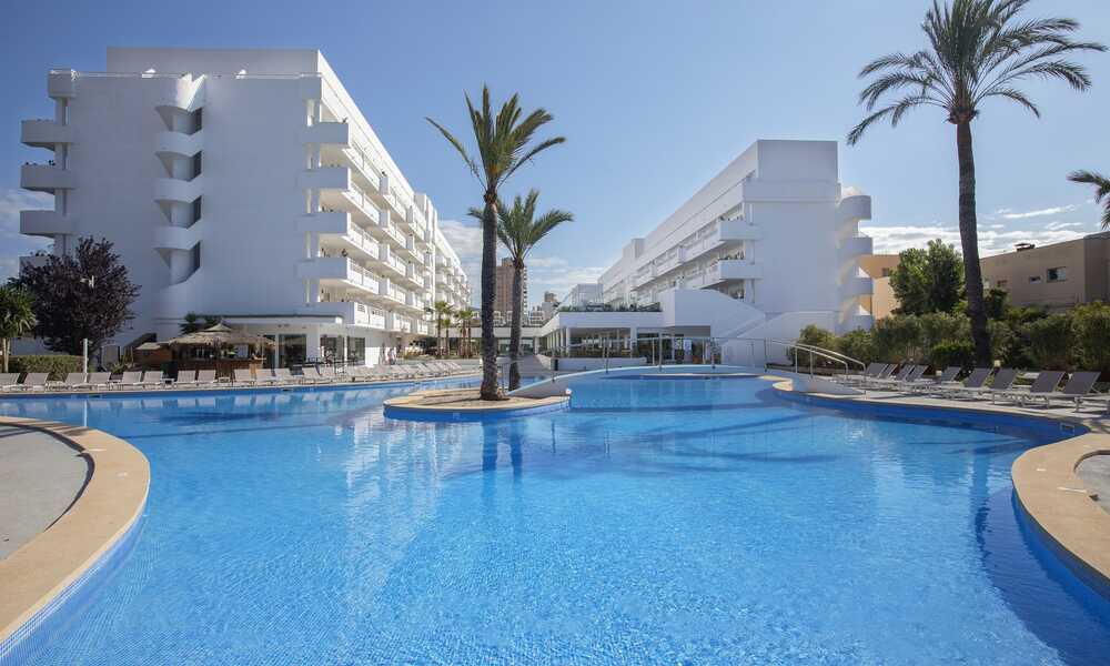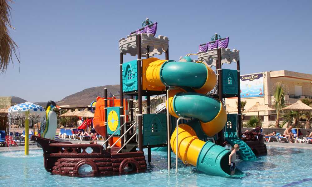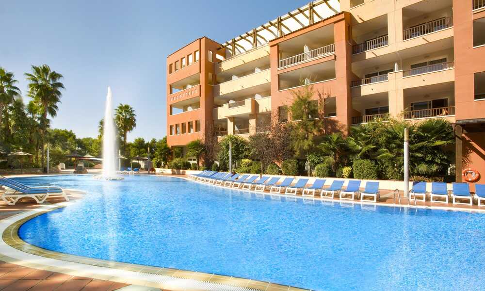 Dit hotel heeft familiesuites met een zee aan ruimte zwembaden voor groot en klein glijbanen een strand op wandelafstand een mini en maxiclub een sportterrein om te tennissen basketten voetballen.